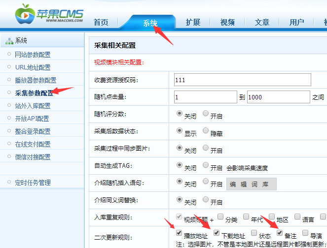 有的会员朋友采集资源后,状态或者下载地址虽然提示了成功并没有更新成功,可检查下是否勾选了下图中的选项。